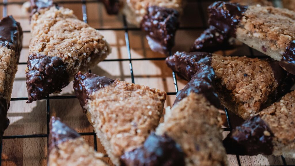 - WICHTIG: Direkt nach dem Backen in Dreiecke schneiden, dann vollständig abkühlen lassen.